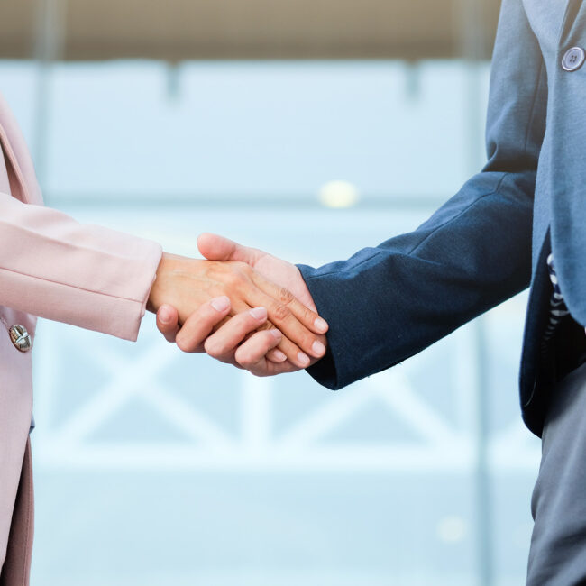Une femme souriante tend la main pour faire une poignée de main
